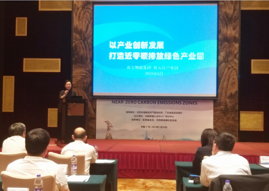 7月26日,广东省近零碳排放区示范工程建设研讨会在广州市花都区皇冠假日酒店举行,官金仙董事长受邀参加会议,并作为唯一的企业代表在会上介绍了状元谷近零碳排放示范工程,分享其建设成功经验。